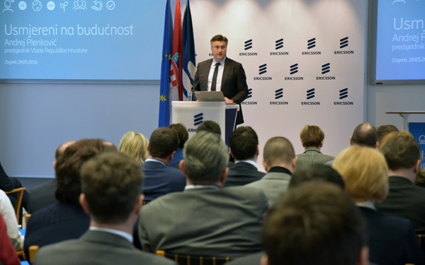 U povodu širenja aktivnosti tvrtke Ericsson Nikola Tesla na području istraživanja i razvoja te predstavljanja novih tehnologija premijer Plenković sudjelovao je u prezentaciji »Usmjereni na budućnost«