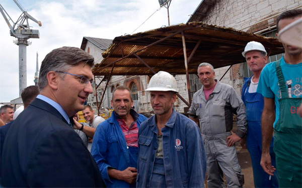"Prije tjedan dana imali smo temeljit razgovor s nadležnom povjerenicom za tržišno natjecanje i državne potpore Margrethe Vestager. Objasnili smo naše ciljeve, a to je dobra volja da se održi brodogradilište, da se pronađu načini u skladu s hrvatskim i europskim propisima za održivu brodogradnju u Puli i Rijeci. Komisija je u fazi da dovrši preliminarne komentare, no iz sastanka je bilo jasno da takav plan zahtjeva doradu da bi mogao biti prihvatljiv. Istodobno, Vlada je dala jamstva kako bi se osigurala plaća za radnike Uljanika i 3. maja. Plaće za kolovoz počele su stizati na račun radnika, tako da ono što smo obećali to smo ispunili", rekao je Plenković.