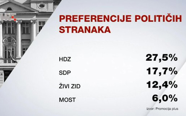 HDZ uvjerljivo vodeća stranka, raste mu prednost pred drugim strankama