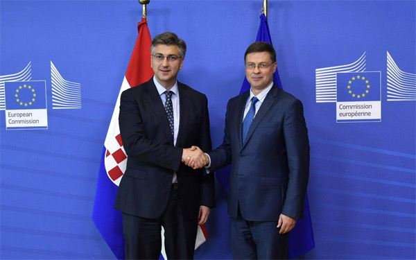Premijer Plenković sastao se u Bruxellesu s Valdisom Dombrovskisom, potpredsjednikom Europske komisije zaduženim za pitanje eura, socijalni dijalog, financijsku stabilnost, financijsku usluge i uniju tržišta kapitala i stabilnosti