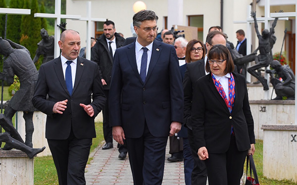 Uz predsjednika Vlade bili su ministar unutarnjih poslova Davor Božinović, ministar hrvatskih branitelja Tomo Medved, državna tajnica u Ministarstvu vanjskih i europskih poslova Zdravka Bušić, predstojnik ureda predsjednika Vlade Zvonimir Frka-Petešić te posebni savjetnik za društvena pitanja akademik Zvonko Kusić.