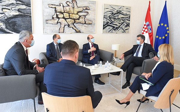 Predsjednik Vlade Andrej Plenković primio je predstavnike Međunarodne košarkaške federacije na čelu s glavnim tajnikom FIBA-e Andreasom Zagklisom