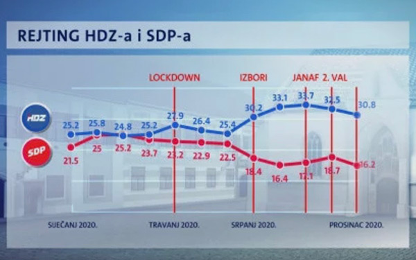 HDZ godinu završava s rejtingom od 30,8%
