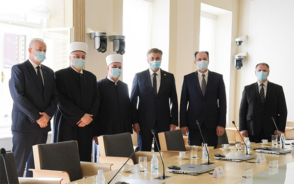 Predsjednik Vlade Andrej Plenković primio je danas u Banskim dvorima dr.sc. Huseina ef. Kavazovića, velikog muftiju Islamske zajednice Bosne i Hercegovine, uz kojeg je na sastanku bio i muftija zagrebački, akademik dr. sc. Aziz ef. Hasanović, predsjednik Mešihata Islamske zajednice u Hrvatskoj.
