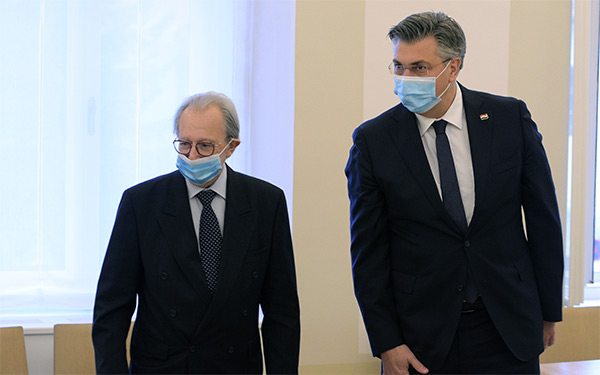 Predsjednik Vlade Andrej Plenković i predsjednik Međunarodnog rezidualnog mehanizma za kaznene sudove Carmel Agius razgovarali su o radu Mehanizma i njegovim budućim aktivnostima