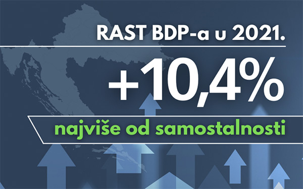 U zadnjem prošlogodišnjem kvartalu nastavio se snažan rast BDP-a na godišnjoj razini od 9,7%, dvostruko veći od stope porasta na razini EU-a (4,8%). BDP za 2021. premašio je realnu razinu iz 2019. za 1,5%, što je potvrda dobrih trendova u gospodarstvu i potpunog oporavka nakon covid-krize.