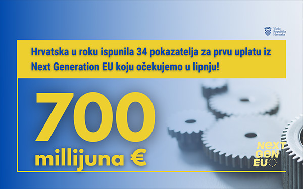 Europska komisija potvrdila je pozitivnu preliminarnu ocjenu hrvatskog zahtjeva da joj se isplati 700 milijuna eura bespovratnih sredstava u okviru Mehanizma za oporavak i otpornost.
