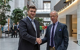 Zastupnik Plenković sastao se danas i s izvjestiteljem Odbora za vanjske poslove Europskoga parlamenta Liborom Roučekom (S&D, Češka) koji će u Europskom parlamentu predstaviti završnu rezoluciju o pripremama Hrvatske za članstvo u EU-u.