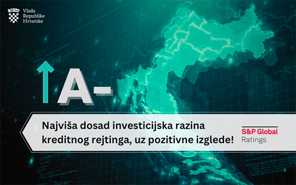 Agencija Standard & Poor's povećala je dugoročni rejting Hrvatske s razine BBB+ s pozitivnim izgledima na razinu A- s pozitivnim izgledima, tj. u »iznadprosječnu kreditnu kvalitetu«