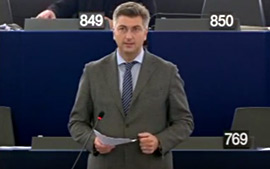 Tijekom plenarnog mini-zasjedanja Europskog parlamenta potpredsjednik Odbora za vanjske poslove Andrej Plenković održao je govor o proširenju Unije na države jugoistočne Europe