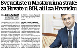 Prvi broj novina »Universitas mostariensis«, koje su pokrenuli Sveučilište u Mostaru i Večernji list BiH, donosi pozdravnu riječ predsjednika Vlade i HDZ-a Andreja Plenkovića