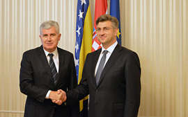 Predsjednik Vlade Republike Hrvatske Andrej Plenković sastao se danas u Banskim dvorima s hrvatskim članom Predsjedništva Bosne i Hercegovine dr. Draganom Čovićem