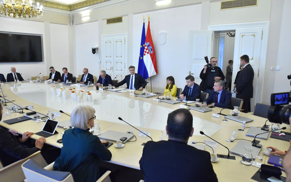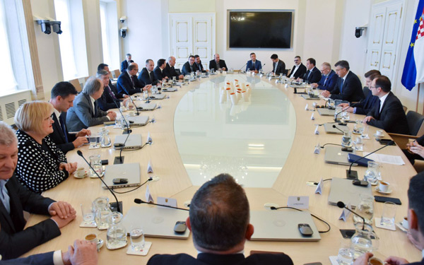 Predsjednik Vlade Andrej Plenković održao je sastanak s predsjednikom i potpredsjednicima Hrvatskog sabora te s predsjednicima zastupničkih klubova