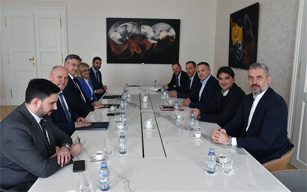 Predsjednik Vlade Andrej Plenković primio je izaslanstvo Hrvatskog nogometnog saveza na čelu s predsjednikom Marijanom Kustićem i izbornikom Zlatkom Dalićem