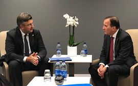 Predsjednik Vlade Republike Hrvatske Andrej Plenković primio je danas predsjednika Parlamenta Kraljevine Švedske Urbana Ahlina