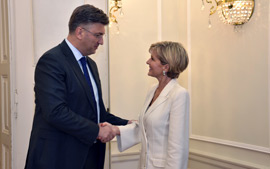 Predsjednik Vlade Andrej Plenković primio je u Banskim dvorima Julie Isabel Bishop, prvu australsku ministricu vanjskih poslova koja je posjetila Hrvatsku