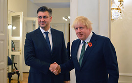 Predsjednik Vlade Plenković sastao se u Banskim dvorima s ministrom vanjskih poslova Ujedinjene Kraljevine Velike Britanije i Sjeverne Irske Borisom Johnsonom