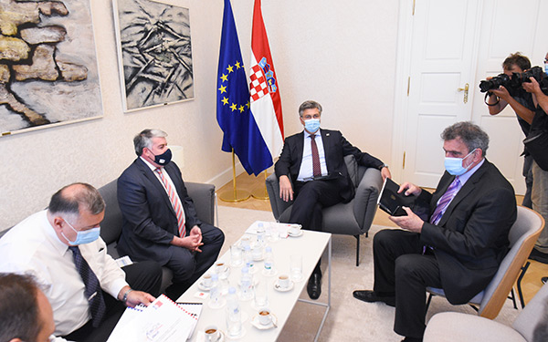 Predsjednik Vlade Andrej Plenković primio je ravnatelja Instituta Ruđer Bošković Davida M. Smitha i Tončija Tadića, voditelja projekta DONES